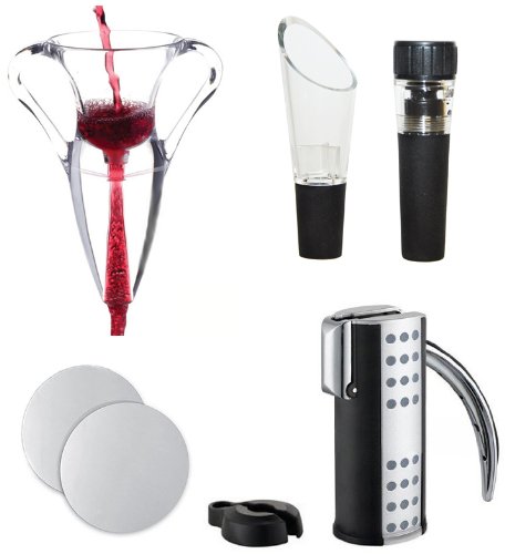 Compatible with wine bottles of all sizes.Enjoy the taste of well aerated wine as soon as you open the bottle.Experience softer tannins, a more fragrant bouquet, and great tastes.Elegant wine set for everybody from the seasoned connoisseur to the newly amateur.Effortlessly get rid of your cork in one piece with this heavy duty tower...Tuscani Connoisseur Essential Wine Set (includes Professional Aerator, Tower Opener, Decanting Pourer, Vacuum Stopper and 2 Drop Features.